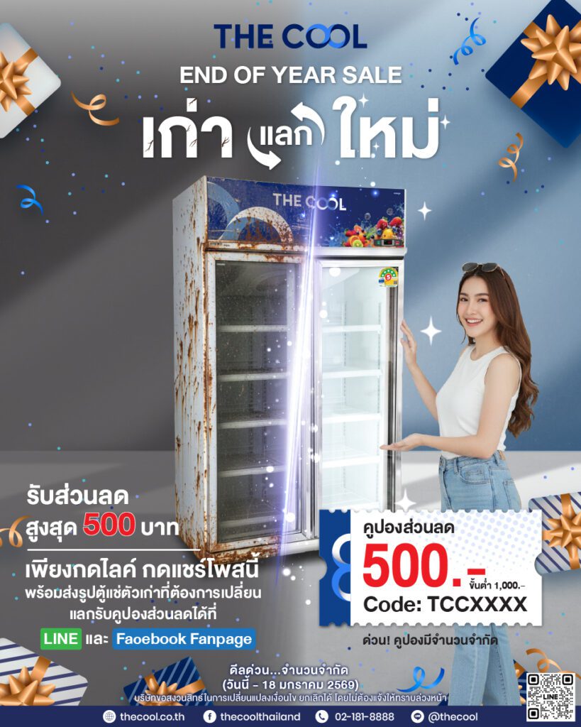ส่งท้ายปีด้วยสิทธิพิเศษเฉพาะลูกค้าคนพิเศษของเรา  พิเศษสุด เพียงนำเครื่องเก่าแลกเครื่องใหม่ รับคูปองส่วนลดสูงสุด 15% ไม่เกิน 500 บาท เป็นของขวัญสุดพิเศษ แทนคำขอบคุณ  เพียงกด Like Page Facebook พร้อมแชร์โพสต์นี้ ส่งภาพตู้แช่ที่อยากเปลี่ยนพร้อมหลักฐานมาที่ LINE: @TheCool คูปองส่วนลดจะส่งต่อถึงคุณทันที  พร้อมให้ธุรกิจของคุณคูลยิ่งกว่าเดิม ช่องทางรับคูปองส่วนลด LINE: @TheCool http://line.me/ti/p/~@TheCool สอบถามรายละเอียดเพิ่มเติม  Tel: 02-181-8888 ต่อ ฝ่ายขาย 𝗙𝗮𝗰𝗲𝗯𝗼𝗼𝗸 : m.me/528735513806564 𝗜𝗻𝘀𝘁𝗮𝗴𝗿𝗮𝗺 : https://instagram.com/thecoolthailand 𝗪𝗲𝗯𝘀𝗶𝘁𝗲: www.thecool.co.th Facebook Inbox: m.me/528735513806564  #TheCool #ส่วนลดปีใหม่ #โปรส่งท้ายไป #เก่าแลกใหม่ #เทิร์นตู้เก่า  ดูน้อยลง Add Your Heading Text Here